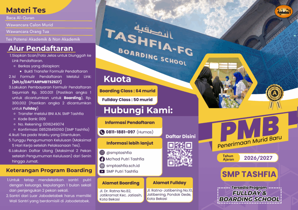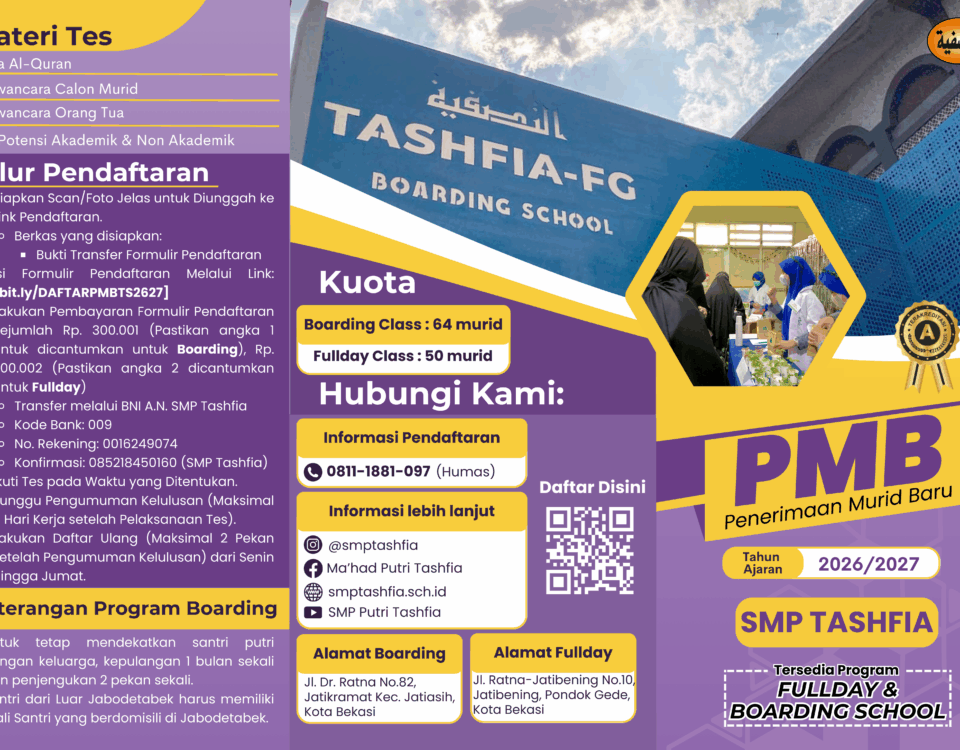 Alhamdulillah telah terlaksana rangkaian kegiatan dari Latihan Dasar Kepemimpinan Siswi (LDKS) SMP Tashfia pada tanggal 24 – 26 Oktober 2024 dengan lancar dan sukses. Kegiatan ini diikuti oleh seluruh siswi SMP Tashfia kelas 7, 8, dan 9. Selama tiga hari kegiatan, para peserta diberikan berbagai materi dan pelatihan yang mencakup nilai-nilai keislaman dalam kepemimpinan, tata cara berorganisasi yang baik, serta pengembangan soft skills seperti komunikasi, kerjasama tim, dan pengelolaan waktu.