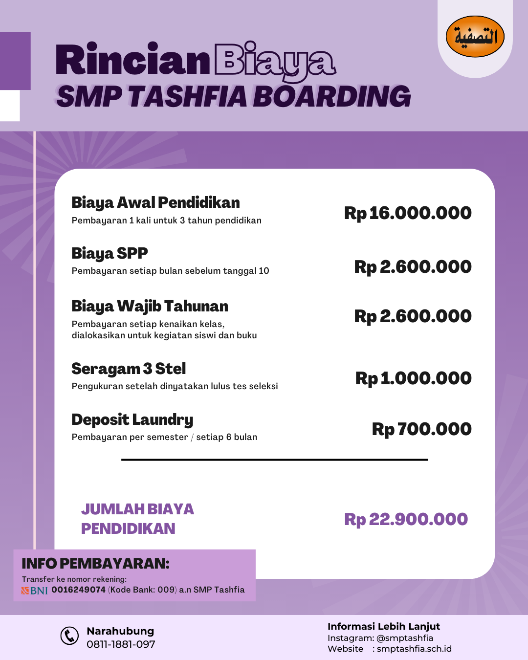 – Rp. 300.001 bagi yang memilih Tashfia Boarding dan