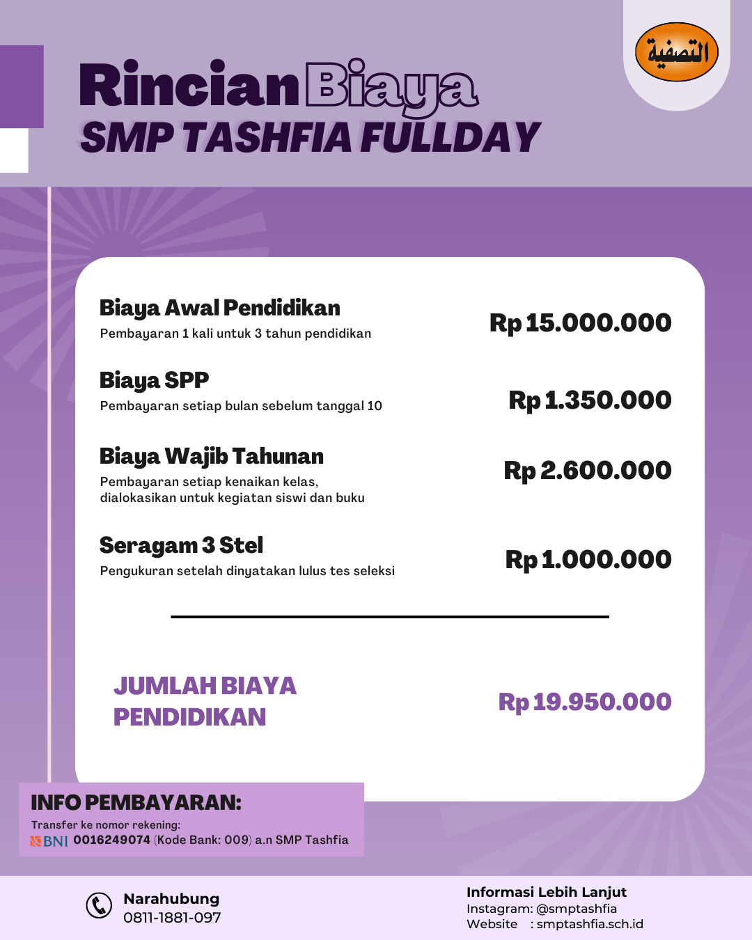 – Rp. 300.002 bagi yang memilih Tashfia Full Day School